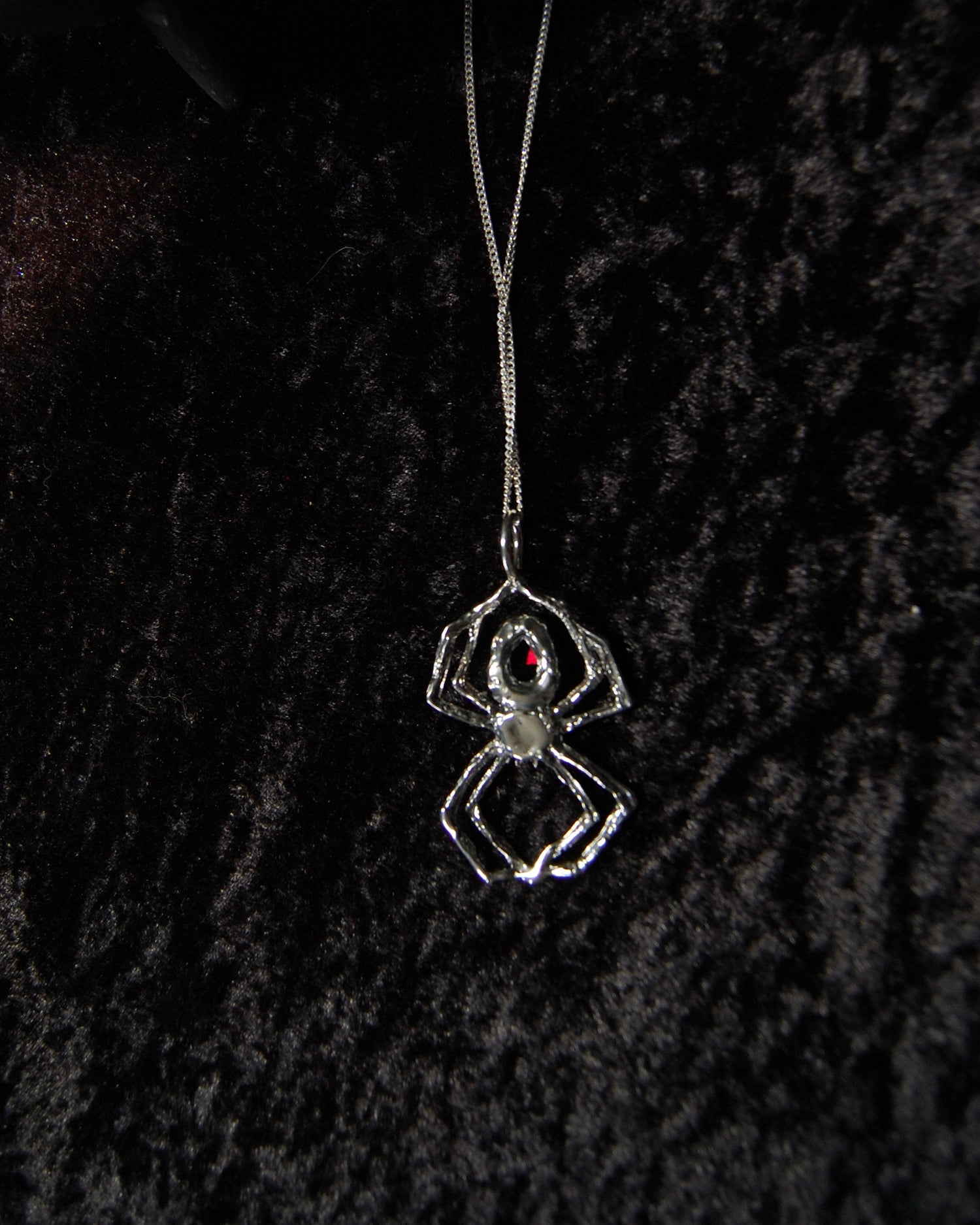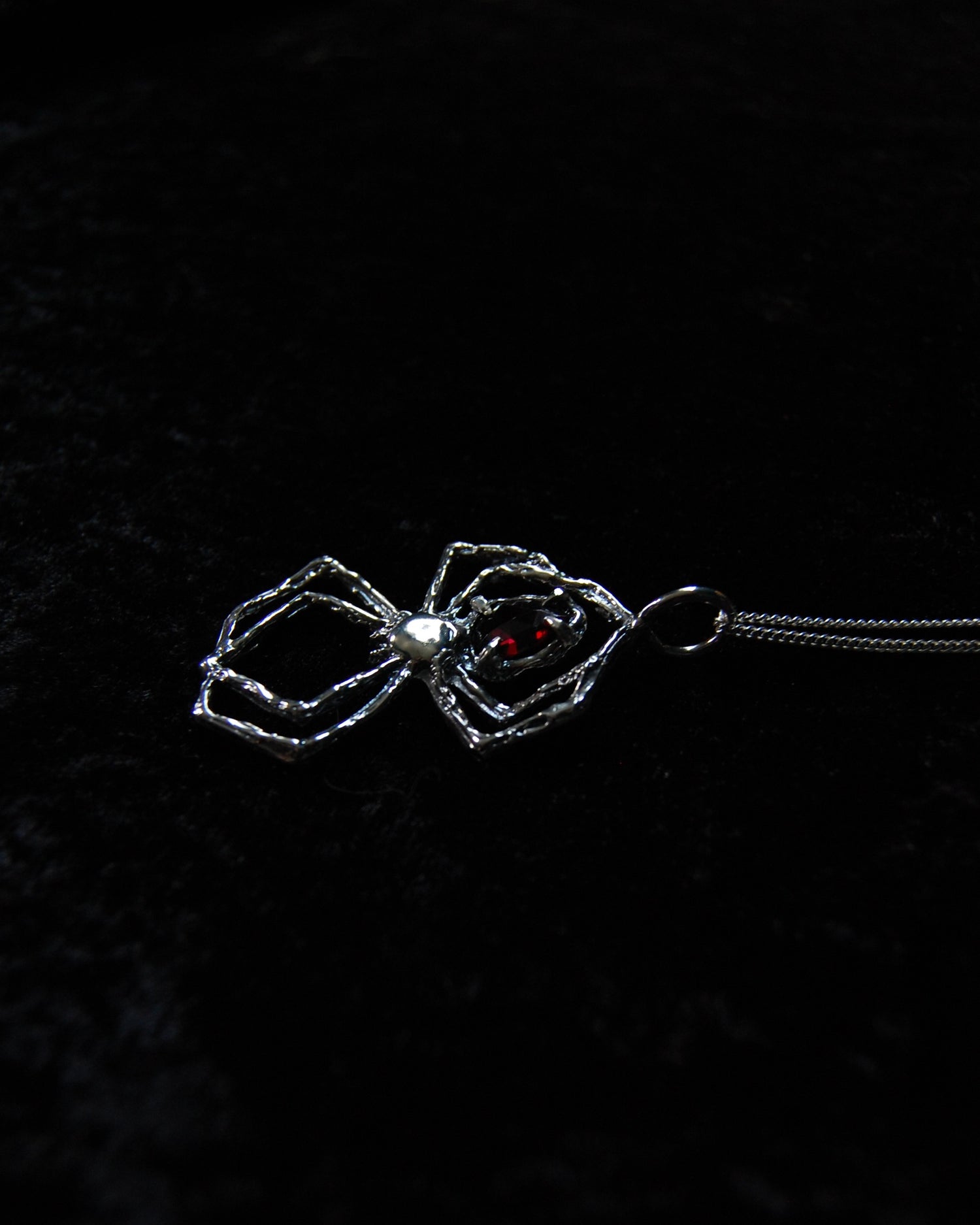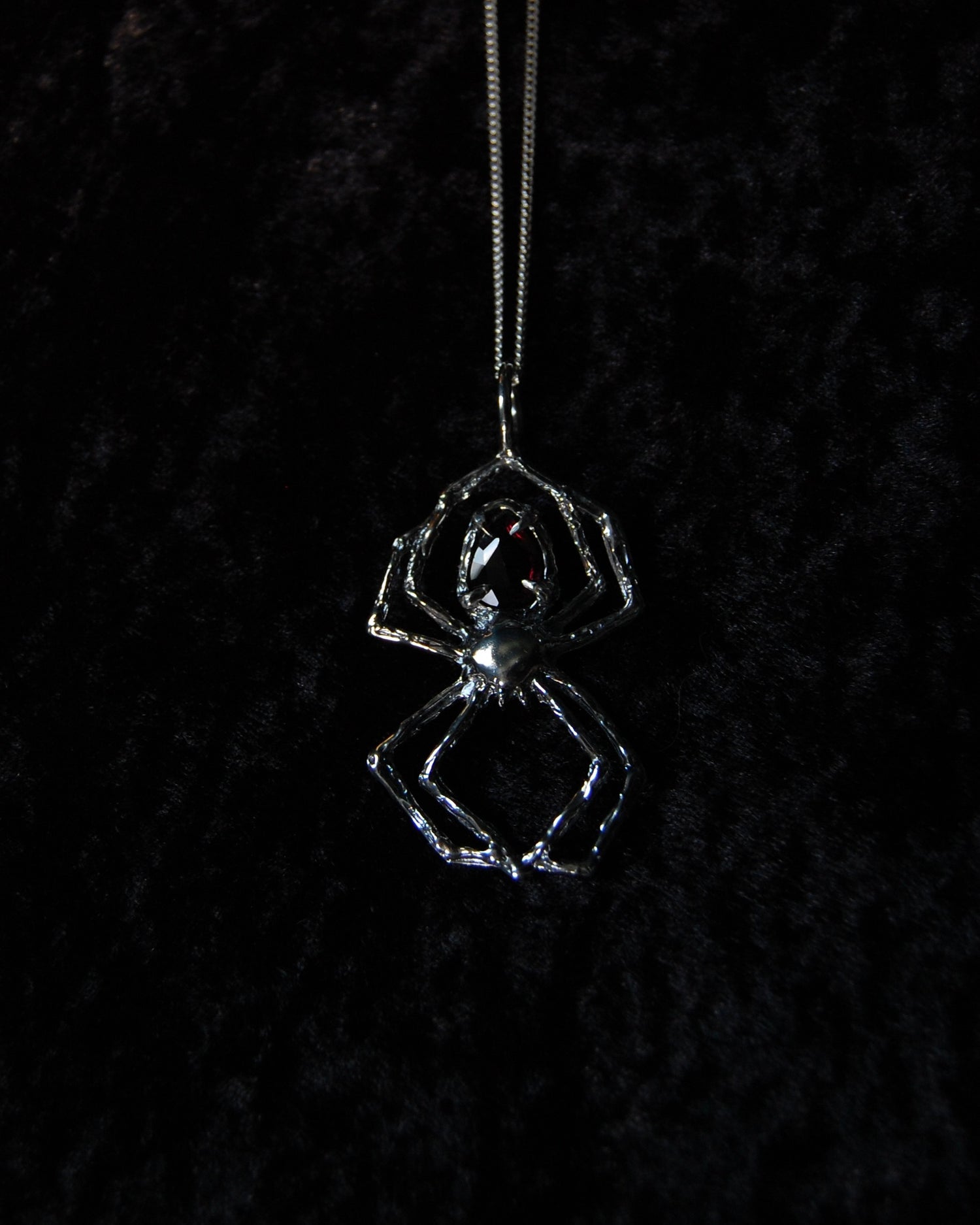 Inspired by the spider’s intricate and tenacious weaving and the deep allure of garnet, this necklace is a testament to the power of resilience, transformation, and passion. Featuring a striking rhodolite garnet gemstone, this necklace captivates with its rich, fiery red hues. Known for its vibrant energy, garnet symbolizes passion, courage, and vitality, embodying the dynamic spirit of the spider.