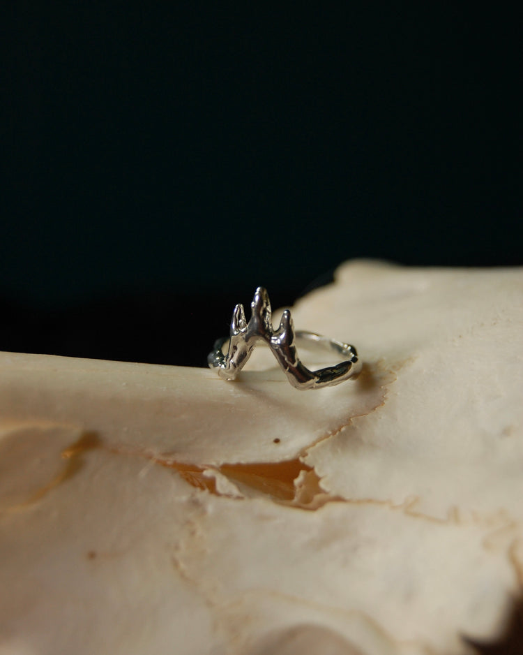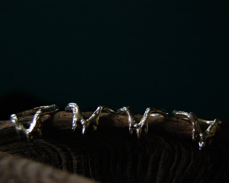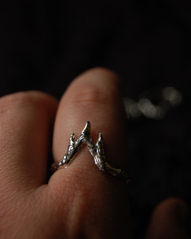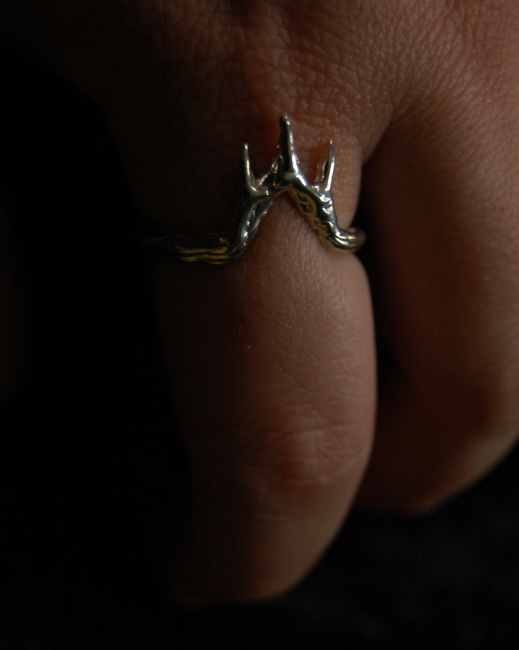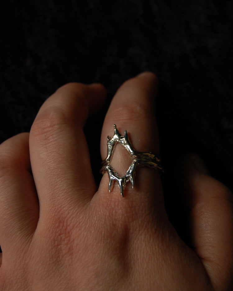 Each piece is one of a kind and handmade in wax and cast into .925 sterling silver. Inspired by the Witch King of Angmar, Lord of the Nazgul and his home in Minas Morgul in J.R.R. Tolkein's Lord of the Rings.