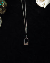 The portal necklace was created with the lost wax casting technique. This pendant was first hand carved in wax, then cast in sterling silver and brass. It is a lightweight, delicate reminder of all that you can be, and that the only requirement is that you take the first step.