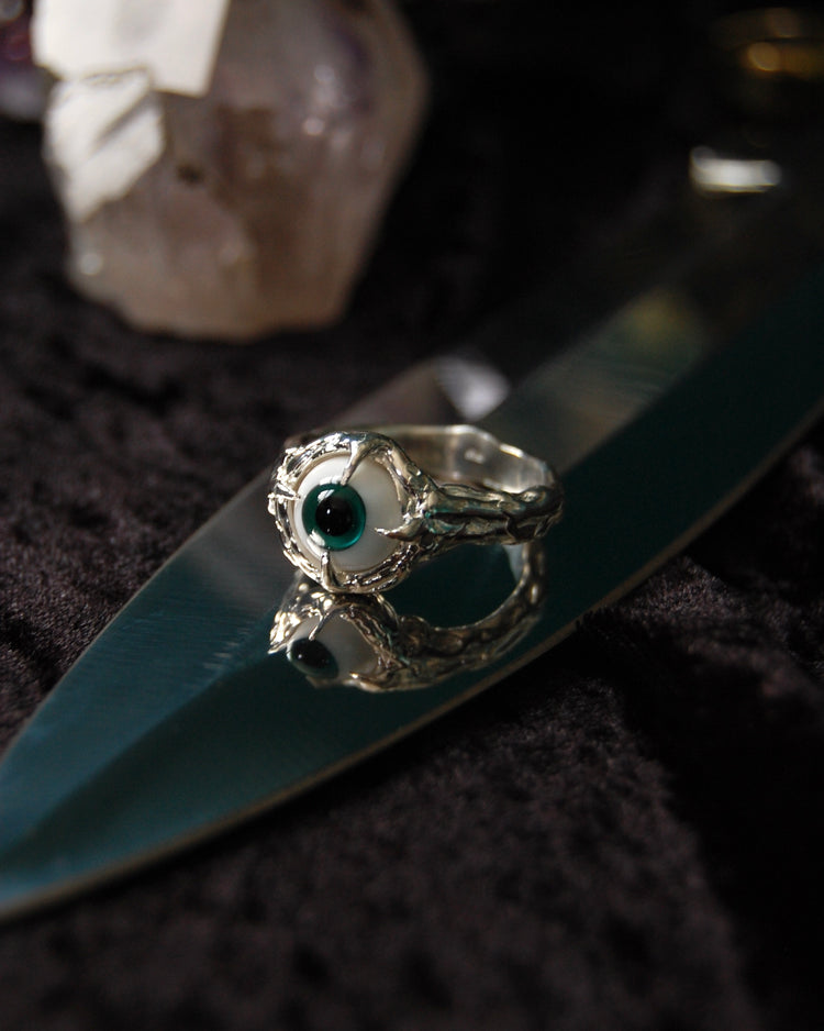 Step into the realm of ancient myths with The Watcher's Ring. Inspired by legendary tales of omniscient beings and guardians of hidden truths, this striking piece features a lifelike central eye, symbolizing protection, wisdom, and the power to see beyond the veil. Bold and mysterious, this ring is a statement of vigilance and inner strength, perfect for those who dare to embrace the unknown.